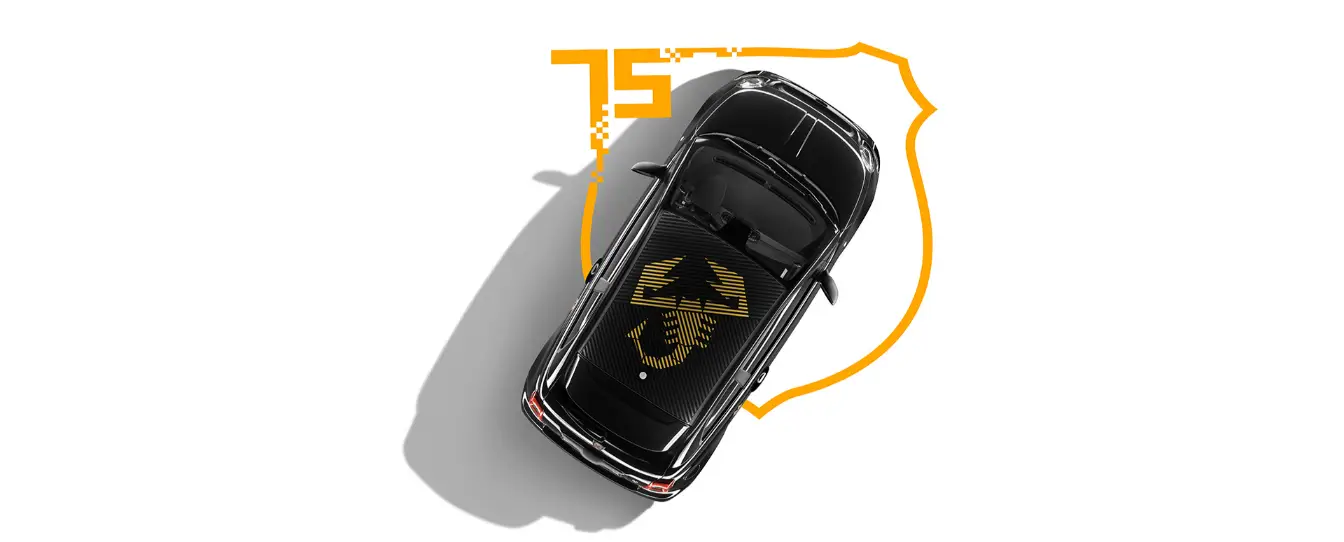 Discover the new Abarth 695 75° Anniversario, the limited edition that embodies the spirit of the Scorpion in its purest form with an all-new look enriched with an Abarth side decal and Gold Scorpion roof decal. Combining past tradition with the potential of future innovation and breathing new life into our history, this model is ready to celebrate our passion at every turn, every straight, every day.