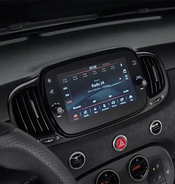 Take control of your journey with the 7″ DAB radio screen, where technology meets the thrill of the open road. Thanks to the intuitive controls at your fingertips, immerse yourself in a world of real-time information about your Abarth, with dynamic entertainment seamlessly connected to your car.
